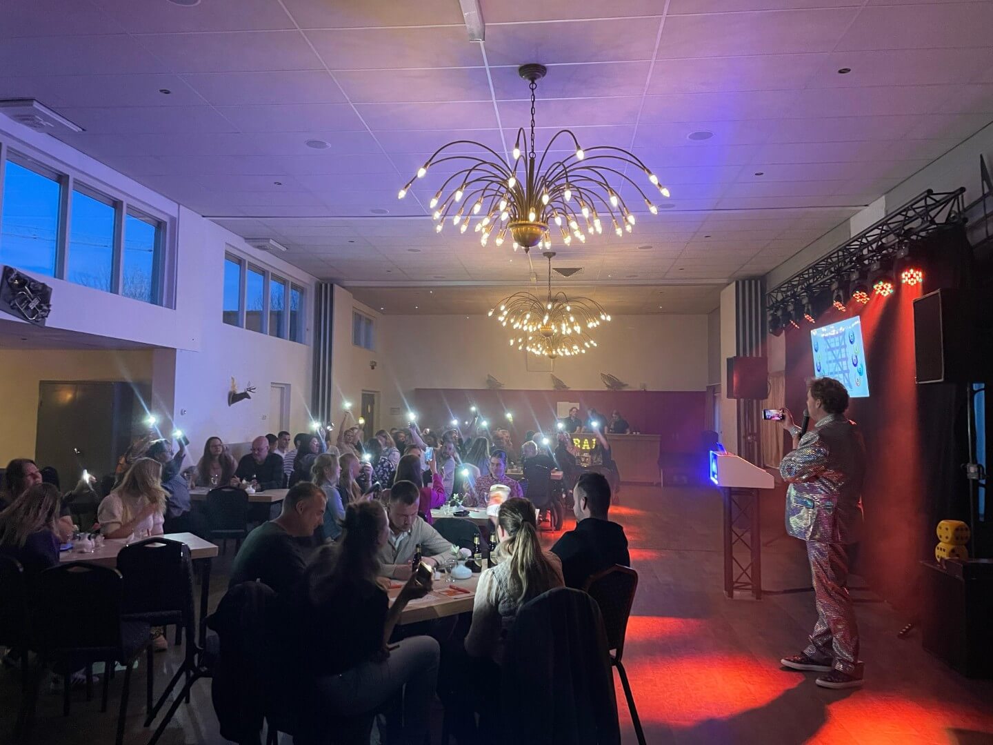De Zingoshow is meer dan alleen een spel; het is een complete beleving. Wij zorgen voor een professionele showopstelling met hoogwaardig geluid, sfeervolle verlichting en een groot scherm. Onze enthousiaste host praat de avond aan elkaar, zorgt voor interactie en creëert een sfeer waarin meezingen bijna onvermijdelijk is. Standaard duurt de show ongeveer twee uur, waarin we meerdere rondes spelen en er dus volop winkansen zijn.